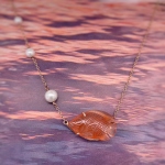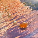 14k Rose Gold Carved Carnelian Fish Necklace with Pearl Bubbles