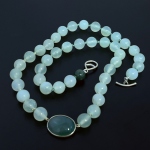 > One of a Kind Chalcedony Beaded Necklace with Sterling Silver Handmade Center and Clasp