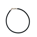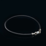 > Sterling Silver Black Leather Bracelet 2mm, 7in