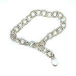 > Sterling Silver Knurled Cable Bracelet with Pearl Drop