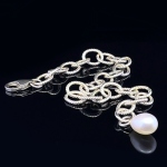 Sterling Silver Knurled Cable Bracelet with Pearl Drop