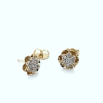 > Estate 14k Yellow Buttercup Cluster Floral Studs accented with diamonds