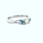 > Cobalt Platinum Trellis Engagement ring with .25ct pale yellow center diamond and teal blue side diamonds .14tcw size 4.75